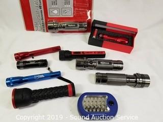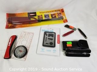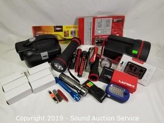 Item Description: Many of the flashlights are LED. Includes: Hilti flashlight and pocket knife set, multi-tool, survival tool, and lighter. ATTN: NEW PICKUP WINDOW, 96 HOURS, NO EXCEPTIONS!