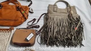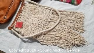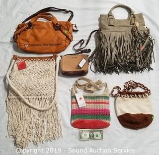 Item Description: Nine West leather purse, knitted hand bag, The Sak woven hand bag, Bella Luca leather hand bag, Mossimo woven and leather hand bag and Aldo leather fringed hand bag. All are like new, some have original tags. All items come from the set of Get Shorty at the conclusion of filming Season 3.