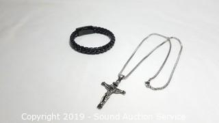 Item Description: Episode 203. Change 1. Levi Strauss black leather belt, black leather bracelet, black beanie, silver cross with Jesus pendant necklace, Forever 21 olive jacket, Arizona denim jeans, gray Fruit of the Loom shirt and black Dickie's sneakers. Comes with scene information and wardrobe photo. All items come from the set of Get Shorty at the conclusion of filming Season 3.