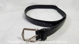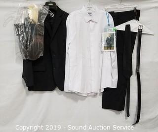Item Description: Season 2, episode 3, change 2. Includes: Marc NY black 2pc. suit 40S 33W, Berloni white button front dress shirt, Stacy Adams black 36" leather belt, Mendel Enterprises black 2-tone tie, Stacy Adams black leather wing tip oxford shoes S:10.5. Comes with scene information and wardrobe photo. All items come from the set of Get Shorty at the conclusion of filming Season 3.