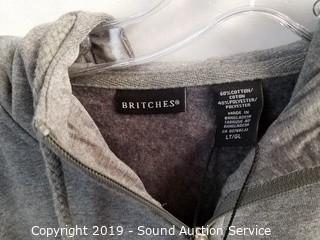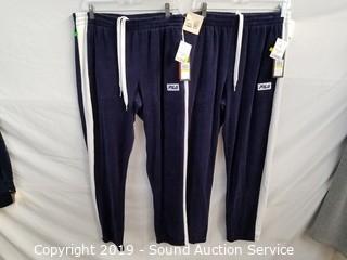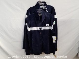 Item Description:  2 NWT Fila jackets and bottoms (tops $25  each, bottoms $20 each), 2 NWT Britches size  large zip up jackets $75 each, and 4 pairs  Athletic Works 2XL sweat pants. All items come from the set of Get Shorty at the  conclusion of filming Season 3.
