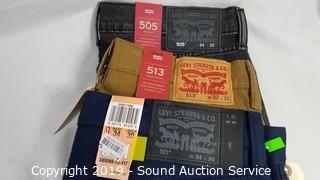 Item Description: NWT Levi's 505 S:34/32, NWE Levi's 513 S:32/30, NWT Levi's 501 button fly S:34/30, Denver Hayes (dirty, needs washed) S:32/30 and men's dress slacks S:32/32. All items come from the set of Get Shorty at the conclusion of filming Season 3.