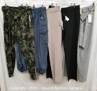 Item Description: Gray belted lined straight pants S:S, Ann Taylor Straight Leg Classic S:4 (has a $98 price tag), Anne Cline beige trouser S:4, blue cargo pants and Ardene S:M belted camo pants. All items come from the set of Get Shorty at the conclusion of filming Season 3.