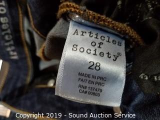 Item Description: Joe's S:28, Levi Strauss 505 Mid Rise S:5-6, Black Orchid Jude Super Skinny midrise jeans S:26 ($85 price tag), Articles of Society Los Angeles denim jeans S:28 and American Eagle S:6. All items come from the set of Get Shorty at the conclusion of filming Season 3.