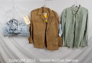 Item Description: From episodes 204, 205 and 206. Includes: St. Johns Bay size large button up shirt, khaki safari jacket with blood and tourniquet, and bag of "bandage/tourniquet" shirts. All items come from the set of Get Shorty at the conclusion of filming Season 3.