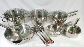 Lot #0276: 18pc. Wolfgang Puck Stainless Steel Cookware