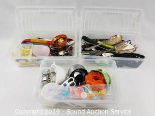 Lot #0161: 3 Totes w/Kitchen Utensils