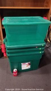 Item Description: 3 are Rubbermaid Roughneck, 22 gallon, 16" x 23" x 18".