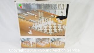 Lot #0275: Fifth Avenue Crystal 59pc. 3-in-1 Game Set