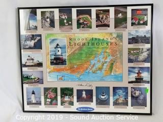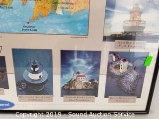 Item Description: Rhode Island lighthouses 27" x 21", vintage saw mill etching 13" x 14", postcard print 20" x 20", 12" x 12", 11" x 11", 9" x 9", and others.