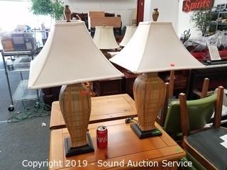 Lot #0003: Pair of Pottery Base Interior Accent Table Lamps