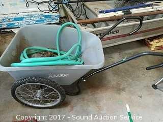 Lot #0008: Ames Yard Cart, Wheelbarrow & Garden Hose