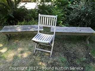 Lot #0056: Pair of Rustic Benches & Folding Chair