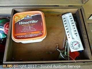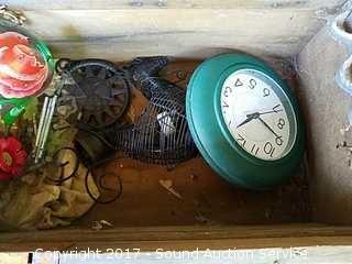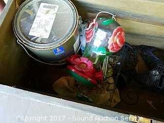 Loaded with various outdoor items such as: hummingbird feeder, wind chimes, wood filler and other outdoor decor.