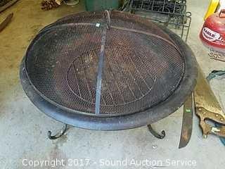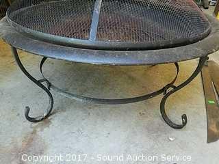 Lot #0015: Wrought Iron Outdoor Fire Pit w/Screen Cover