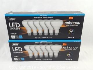Lot #0154: (2) 6pk LED Dimmable Flood Light Bulbs
