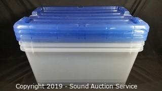 Lot #0248: 3 Clear Plastic Stackable 45QT Totes w/Lids