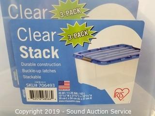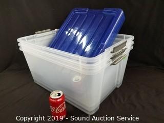 Lot #0373: 3 Clear Stackable 45qt Totes w/Lids