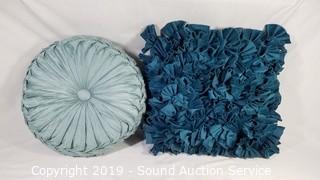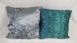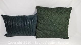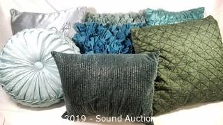 Lot #0075: 7 Decorative Throw Pillows - Blue/Green/silver