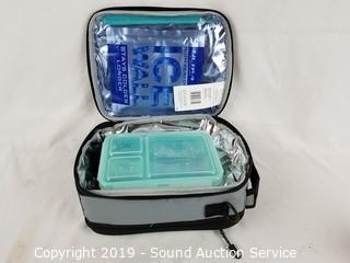 Item Description: Comes with bento containers and ice walls. Approx. 8" x 10" x 4-6".