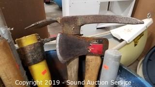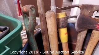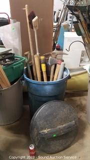 Lot #0331: Trash Can w/Digging Tools & Bats