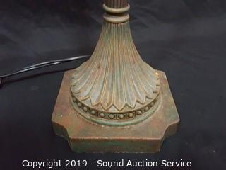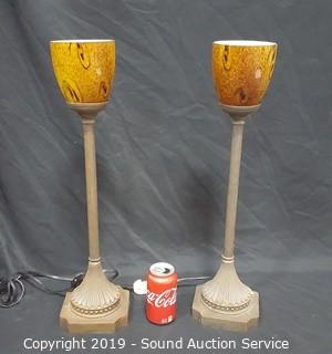 Lot #0018: 2 Art Glass Shade Bronze Finish Up-Light Lamps