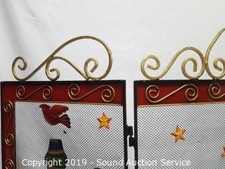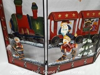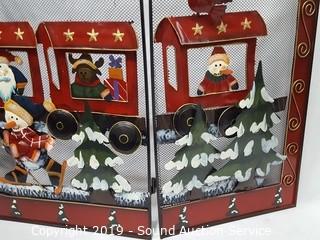 Lot #0035: 3 Panel Tin Decorated X-Mas Theme Fireplace Screen