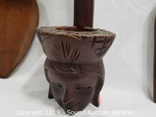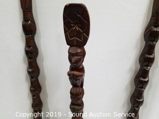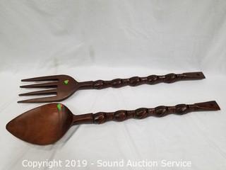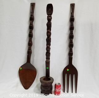 Lot #0061: 3pc Carved Wood Utensil Wall Decor