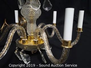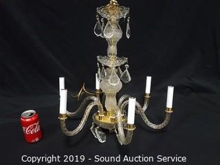 Lot #0024: 6-Light Crystal Prism & Brass Chandelier