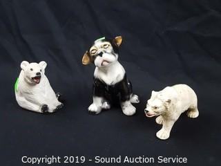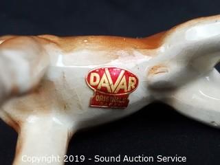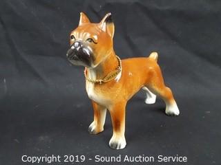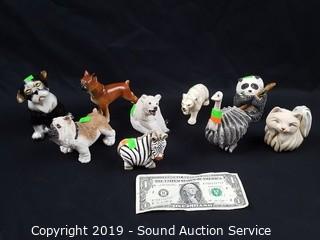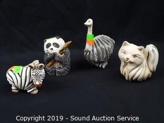 Item Description: 4 are Rinconada signed hand crafted pottery figures (cat, panda, zebra, and ostrich), bulldog marked "K", boxer with Japanese tag "Davar", other Japanese ceramic figure, and 2 unmarked.