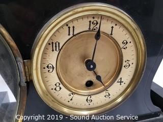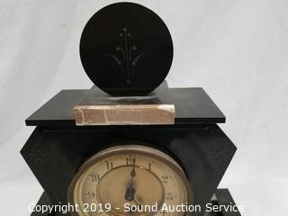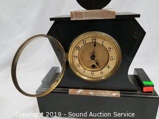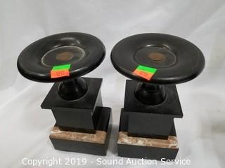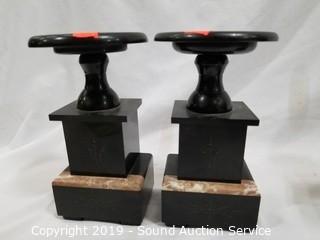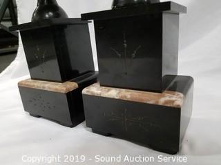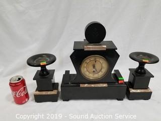 Lot #0066: Black Marble Mantle Clock Candle Holder Set