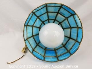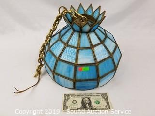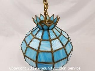 Lot #0084: Blue & White Glass Hanging Swag Lamp