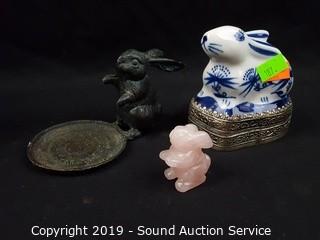 Lot #0187: Bunny Figures, Trinket Boxes, Salt & Pepper's