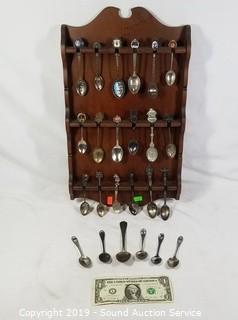Lot #0258: Collectors Spoons w/Display Some Silver