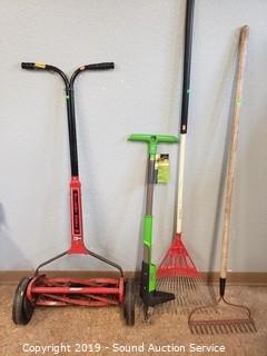 Lot #0335: Craftsman 18" Push Reel Mower & Garden Tools