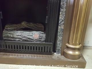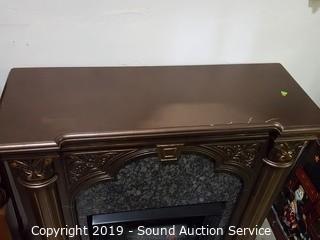 Item Description: Bronze painted finish (couple scratches on the top). Otherwise excellent condition. 42" H x 42" W x 16" D. The fireplace has a faux log, believe it is just for decoration, no venting or electronics.