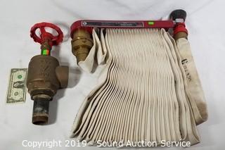 Lot #0128: F. M. Fire Hose Rack w/Hose & Valve Control