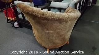 Item Description: With matching throw pillow. In excellent condition. 36" H x 39" W x 29" D, 16" to seat.