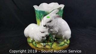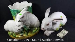 Lot #0127: Lg. Ceramic Bunny Statuary & Planter