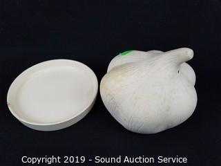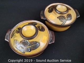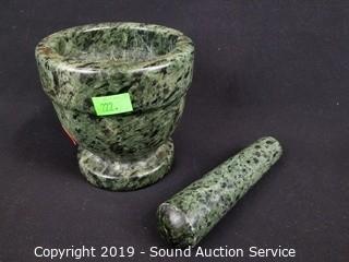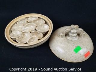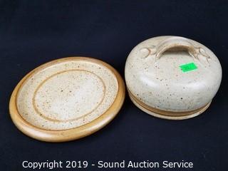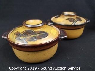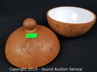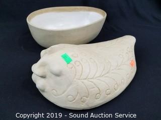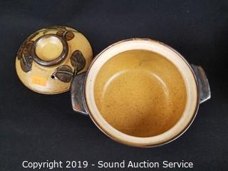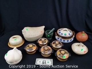 Lot #0222: Marble Mortar w/Pestle & Pottery Covered Dishes