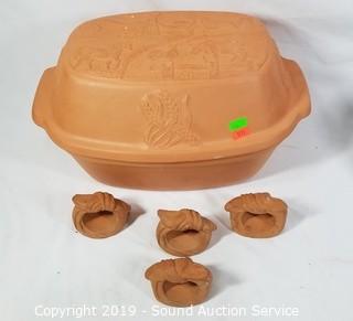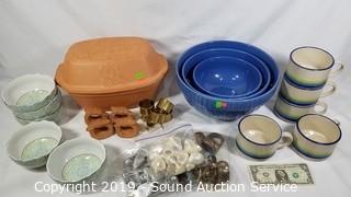 Lot #0110: Pottery Roaster, Nesting Mixing Bowls, Mugs & More
