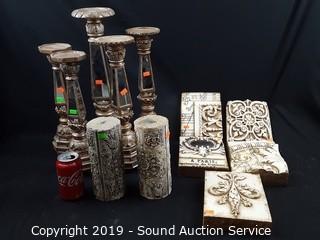 Item Description: 5 Memory Blocks, 2 decorative candles & 5 mirrored graduating candle holders. Blocks are 6" x 8", 14" to 18" candle holders.