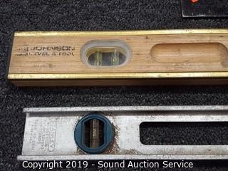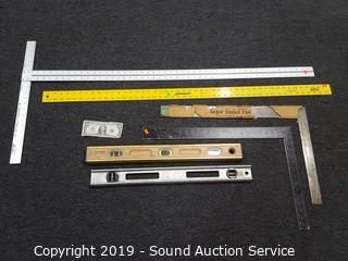 Item Description: Levels wood & aluminum 24", Carpenter Squares, 48" T-Square & 48" Straight Edge.