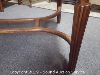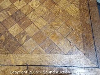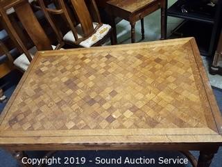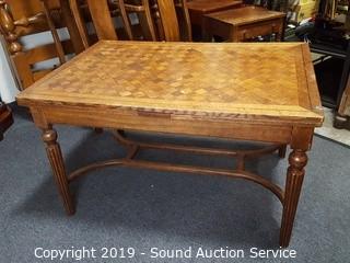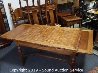 Lot #0023: Vtg. Marquetry Checkered Top Pullout Leaf Table