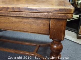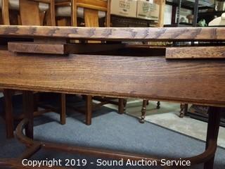 Item Description: Some wear to the finish. 30" H x 50"-94" x 35". Leaves pull out from under the table top.