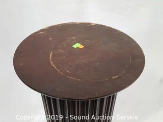 Item Description: Mahogany finish with some wear to the finish. 30" H x 11-1/2" dia.