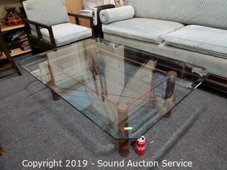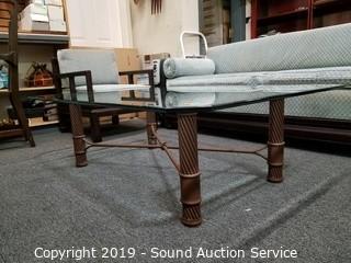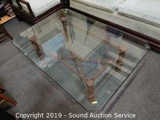 Lot #0056: Wrought Iron Double Beveled Glass Top Table
