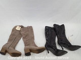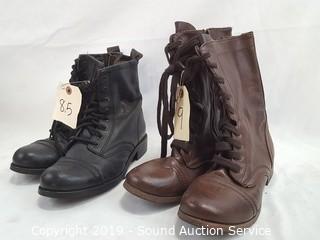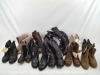 Item Description: Includes: White mountain leather boots S:12.4, Fantasma boots 7.5, brown leather boots S:7.5, leather boots 9, platforms 8, Dolve Vita leather 5, Steve Madden 8.5, Steve Madden 8.5 black leather, Rocket Dog 8, Modern Vintage boots 10, GAP 9, and Guess 6.5.