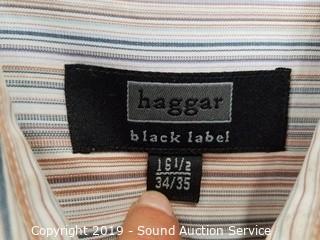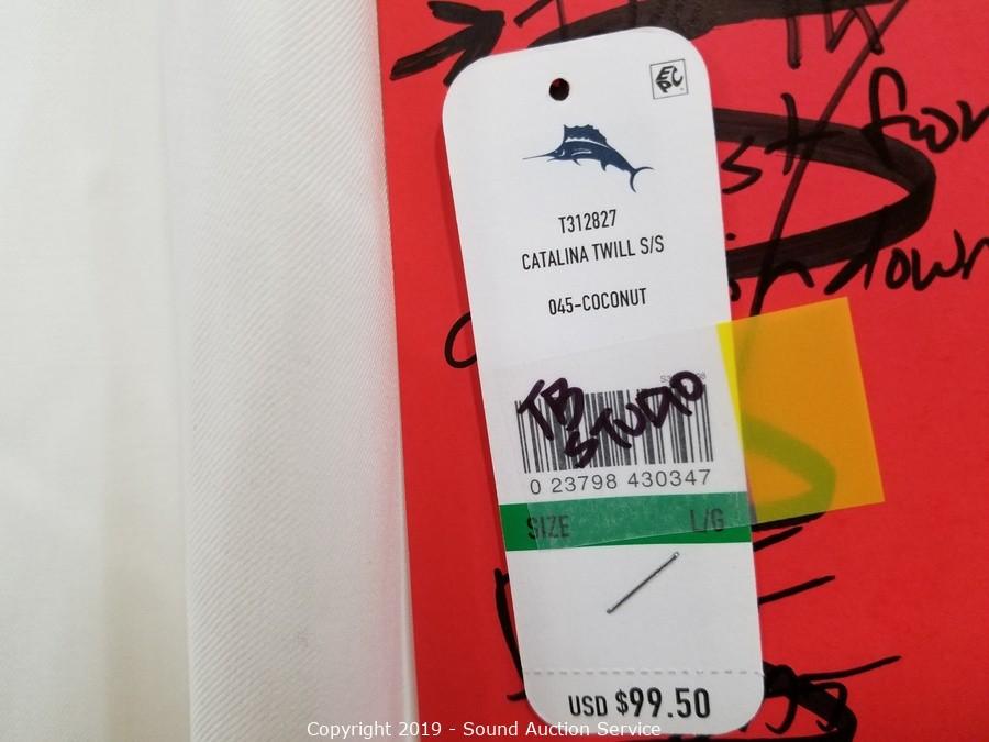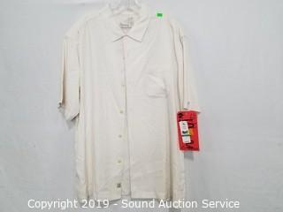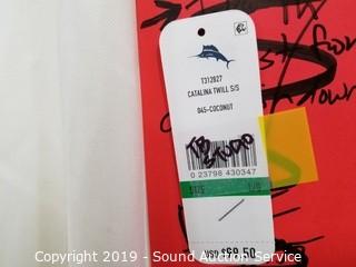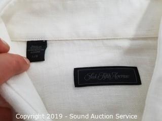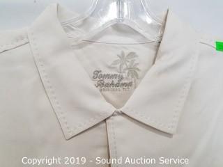 Item Description: All size large. Columbia grey with original $65 price tag, Haggar Black Label multi-color stripe, Tommy Bahama ivory, & Saks Fifth Avenue white. In excellent condition. All items come from the set of Get Shorty at the conclusion of filming Season 3.