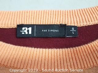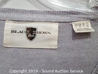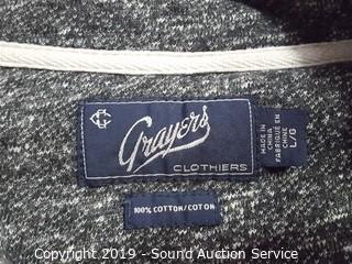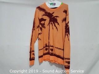 Item Description: All size large, in excellent condition. Includes Grey "Black Brown" pull over, Ben Sherman blue & black pull over, Par Simmons Orange & Burgundy Palm tree print pull over, Uniqlo beige button up, & Grayers button up jacket. All items come from the set of Get Shorty series on Netflix at the conclusion of filming Season 3.